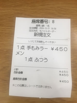 ちなみに1kgチャーハン1080円というトンデモメニューがあり。また「おともラーメン」税込150円というのがあるが