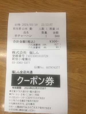ちなみに「福しん」ではギョウザ(6個)は、税込240円。味はともかく日本一安い中華料理店の福しんだが、まだ客が殺到していないところを見ると、日本はそこまで追い詰められていないようだ。