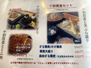 「十割蕎麦セット」という天ぷら盛りがついたものが1490円。うん、まずまずの値段だ。