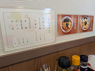 壁に貼ったメニューには「中華そば」800円と「チャーシュー麺」1,100円の二種のみ。大盛はプラス100円とある。