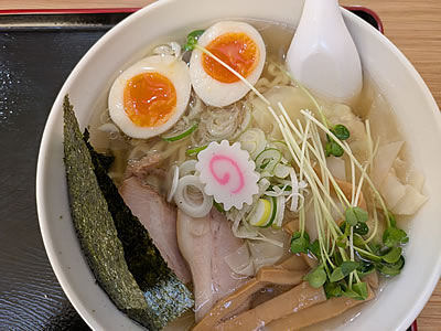 さらに、「白醤油」だけにワンタンメニューがあったので、これで注文。正確には「特製 貝出汁ワンタン白醤油中華そば」(税込み1180円)を大盛で。