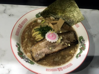 今年は開店10周年だという。三郷駅前に支店があったらしいが、すでに閉店している。周囲の環境を含めちょっとダークな雰囲気を漂わせるラーメン店である。