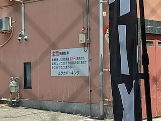 『注意 無断駐車した場合罰金3万円頂きます。場合によってはタイヤの空気を抜く場合がありますのでご注意ください。ユタカパーキング』
