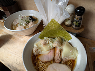結局、僕が醤油ラーメンにワンタン(4個)のトッピング。ケイ子は塩ラーメンに決定。