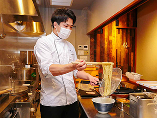 店はカウンター10席のみ。店主ともう一人の男性の2人体制。私がリュックを壁に掛けたら足元にある籠に入れてくれと要請。他の客にもその要請をしていた。