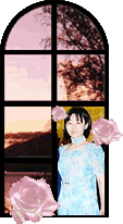 何故か薔薇とともに窓辺にたたずむ沙織です。