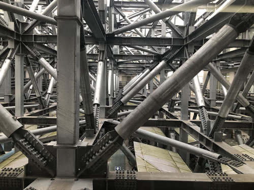 はい、これは東日本大震災の後に措置されたもので、元々広い中庭空間であった部分に鉄骨の支えを入れたのです。