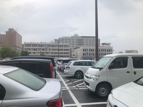 向こうに見えるのは県庁ではなく県警本部ビル。僕が現職の頃はまだ出来ていなくて、県庁本庁舎の3・4階に居候していました。(一気に大きくなったなぁ‥)