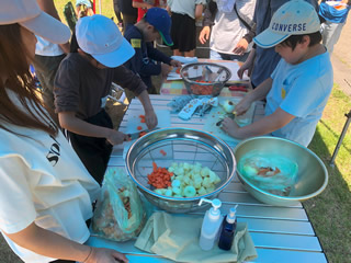 子供たちは、材料の調理に一生懸命だ。