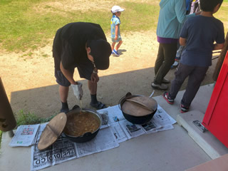 で、当日は子供たちが材料を切ってカレーを作るのですが、問題は火起こしや飯盒飯の焚き方。