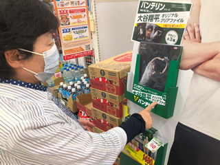 戻って来たので訊いてみると、キャンペーン期間だけ使っている大谷翔平の実物大立て看板を、期間が終わったら貰えないかと。(どこに置くんだよ!)