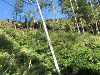 ということで、ますます細くなる恐怖の山道を下ることしばし・・こちらも中々先が見えない道だが、森林を伐採した危ない崖の直下を進み・・