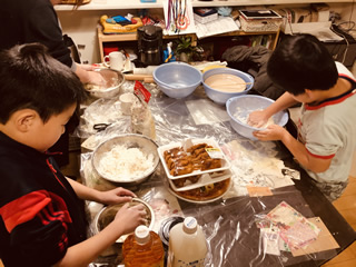 まだ長男のヒビキ君が小5、カナト君が小2でしたが、面白がって一生懸命粉をこねております。で、オリカちゃんはと言えば・・