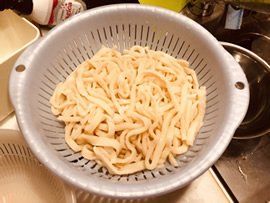 仕方がないので”だいたいこんな雰囲気”と感じ取ってもらうために、2019年にヒビ達が作った「手打ちうどん」の完成写真を。