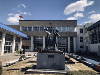 ここは、拓郎やサオリの母校でもありますが、この僕の母校でもある。ということで、エントランス前の池も僕が在校した当時のまま・・感慨深いものがあります。