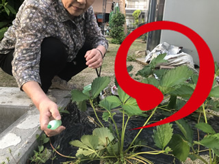 はい、コレは庭に植えたイチゴが実をつけたところ。