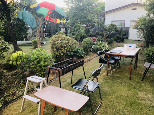 5月26日の日曜日の家族BBQを前に、前日、ケイ子と二人で設営した庭の様子がこんな感じ・・