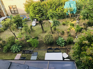 整備された広々とした庭に孫たちは大はしゃぎ。リクライニング・チェアの取り合いでケンカが始まる。(おいおい・・三つあるのに!)