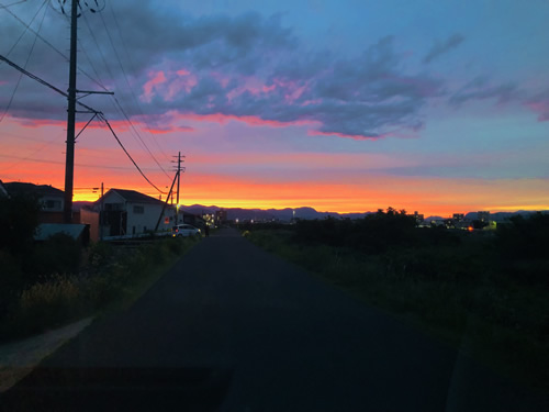 少し時間は遅くなりますが、ちょうど僕もケイ子のお遣いでスーパーに向かって荒川堤防を走っていて美しい夕焼けに感動。