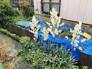 元々は庭の中にあったこの君子蘭やミョウガやフキノトウは、芝生を広げるために敷地外に植え替えたのです。