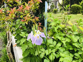 鬼灯(ほおずき)畑の端っこにアヤメの花が。