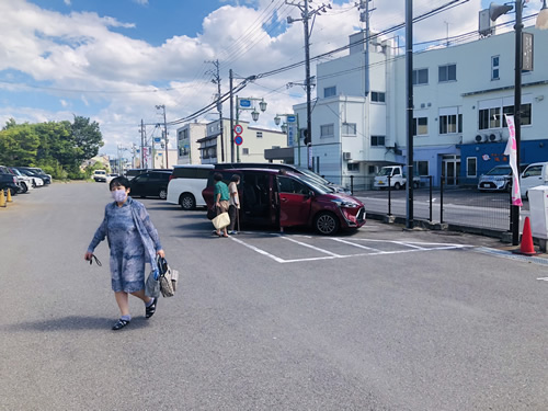 ハイ、昔懐かし飯坂温泉はホテル聚楽の駐車場です。左にケイ子さん、中央にサオリの新車が写っております。