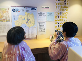 「福島酒蔵マップ」に見入るしぃばぁとケイ子。