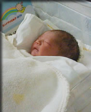 2007年12月4日の午後2時頃「妊婦日記」のちぃな嬢に、めでたく第一子誕生!! 病室に戻るなり撮影されました緊急画像がリアルタイムで到着! 「岸波通信」読者の皆様にだけお届けする、できたてホヤホヤのお子様写真。