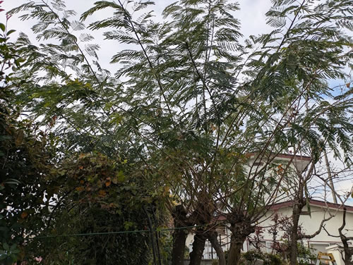 そう言えば、半分の大きさに切ったのに、こんなに伸びてしまった合歓の木(我が庭の”女王様”とも言う)の枝も払わなきゃならないなぁ・・
