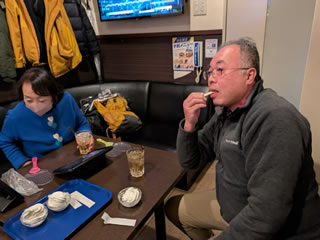 タケヒコオーナーと奥さんのミルクティーは、夜の宿を取って準備万端。そこに従兄弟のマサヒトが加わって4名のカラオケ会です。