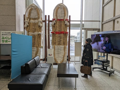 3月初旬、ヤボ用があり福島市役所に出向いた我ら夫婦。市役所の入口にはこんなモノが。