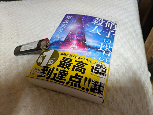 途中、コンビニに寄って買ってきた知念実希人の新刊ミステリ『硝子の塔の殺人』!!