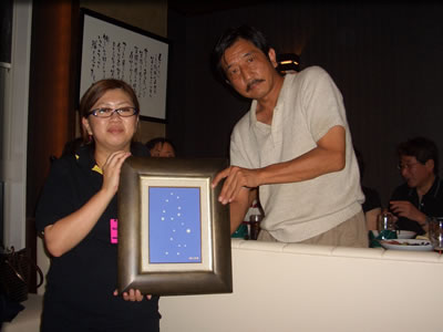 この店を仕切ることになったフミエちゃんの娘さんが乙女座生まれなので、MIZO画伯の星座シリーズから「乙女座」の絵を贈呈することに。