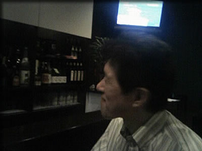 ついにカラオケタイムに突入。写真は、カウンターに移った名医ドクター・ミヤタの横顔。