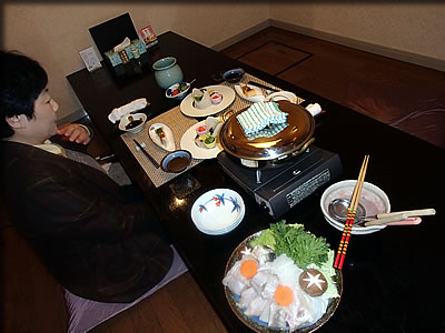 「ふぐ鍋、食べた食べた!苦しい・・」