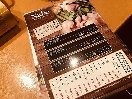 早速テーブルの上のメニューを見ますと、単品メニューがやたらと高い。