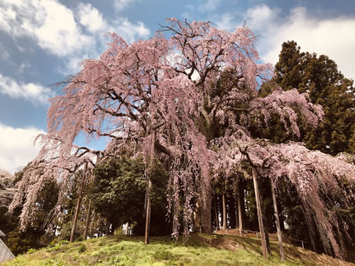 ぢつに見事な桜で、福島市の花見山のようにどんどん周囲の山々にまで桜が広がっているのです。