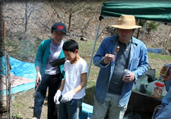 茂太郎君を高い門の上に載せ、「そこで勇気を出して立ってみろ」とのこと。どうやら、子を千尋の谷底に落とす獅子の心境のようです。