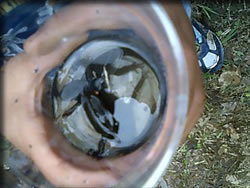 途中、買い物に寄り、缶ビールとお茶、さらには清水の舞台から飛び降りたつもりで「清酒末廣」の一升瓶を購入。