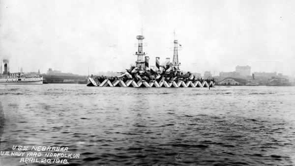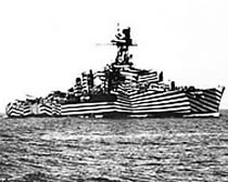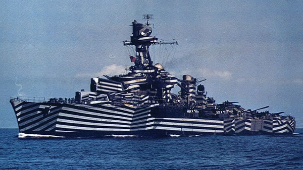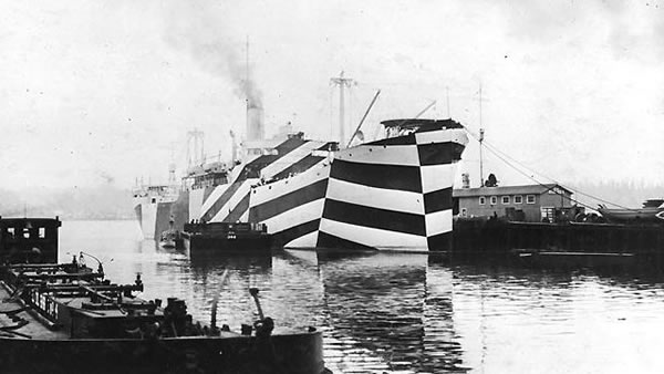 さて以下は、その後にイギリスを超えて各国に採用されていった「ダズル迷彩」の艦船画像。