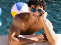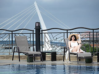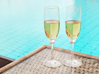 とりあえず準備された竹編みテーブルで足を組み、サングラスなどかけてみる。