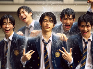 いや、服が濡れるし・・とか後輩たちが躊躇していると、グルリと向きを変えて彰が上がって来る。