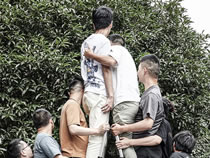 数分後、我らは3メーター50センチはあろうかという刑務所の塀を外から検証し、何とか乗り越えられそうな場所を見つけた。内側は運動場で、お誂えのポジションだ。