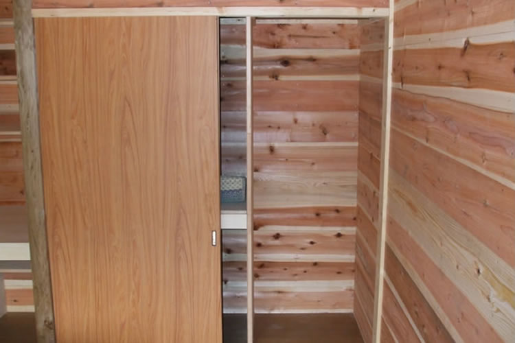 山荘の内部。新しい木の香りがします。写真は押入れのコーナー。