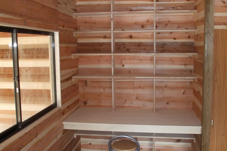 押入れの隣がこれ。小さいながらも書斎のコーナーです。窓の向うには森が広がります。