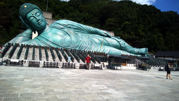 ここは福岡県篠栗町の『南蔵院』(なんぞういん)。 この釈迦涅槃像は、横の長さが41メートル、高さが11メートル、重量は約300トンということで、ブロンズ製としては世界一大きいらしいです。