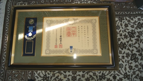 最後に、姉がいただいた藍綬褒章がこれです。