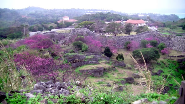 次が沖縄本島の北部にある今帰仁城(なきじんぐすく)。 ちょうど沖縄の桜「カンヒザクラ」が盛りで桜祭りの真っ最中。