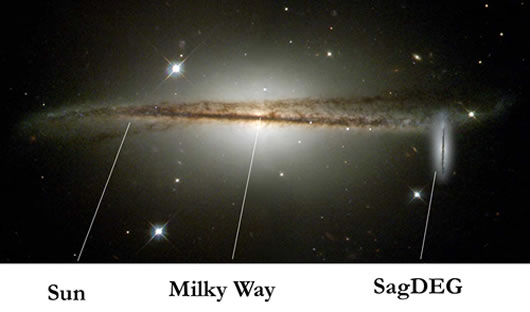 衝突しているのは、1994年に発見された「いて座」の矮小銀河で、銀河系の1000分の1ほどの小さな伴銀河。