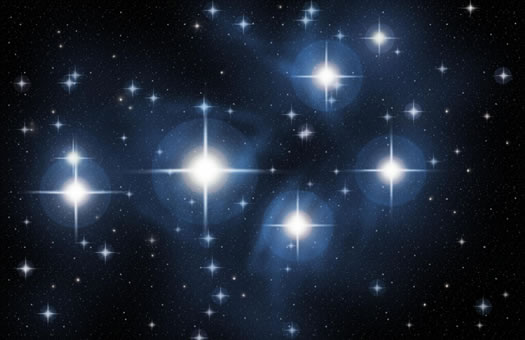 ギリシャ神話に出てくるプレアデス七姉妹は、天空を支える巨人アトラスと妖精プレイオネの娘たちで、月の処女神アルテミスの侍女たちであったとされています。
